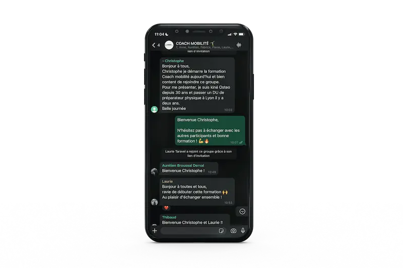 Un support mail et un Groupe WhatsApp de la formation sont à ta disposition.